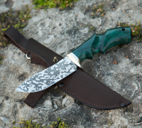 Нож Кабан из кованной стали Х12МФ с травлением, рукоять - стабилизированная карельская береза, кожаный чехол идет в комплекте.